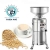 Sau khi máy vận hành, cho đậu nành được ngâm sẵn vào máy từ từ cùng với nước lạnh (được gắn vào van xả phía trên) để máy tự xay. Bạn cũng có thể điều chỉnh độ kiệt của bã qua việc điều chỉnh khoảng cách đá xay bằng tay vặn phía trên. Bã sẽ ra một đầu và sữa đậu nành ra một đầu.